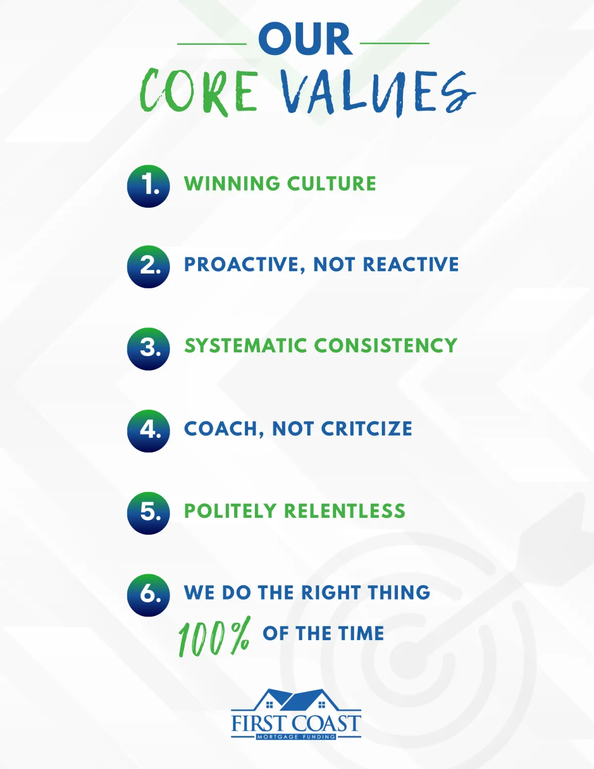 With over 44 years of combined experience, First Coast Mortgage Funding owners Jason Kindler and Aaron Bacus are known for being independent mortgage experts. Their mission is to serve the Jacksonville, FL community with honesty, integrity, and competence. Our team promises to offer creative solutions to help borrowers overcome roadblocks that can arise while securing a loan. It is our priority and privilege to ensure our clients receive the best service, programs, products, and rates. At First Coast Mortgage Funding, we understand each client has their own set of unique needs and expectations. We strive to meet and exceed your wishes with a wide array of mortgages, high-quality service, and individual attention.